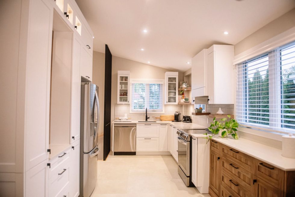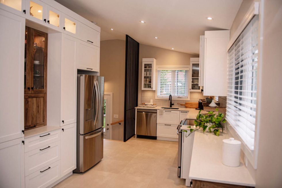 Ce projet de rénovation visait à transformer une maison des années 70 en un espace de vie moderne et fonctionnel, en réaménageant le rez-de-chaussée et le sous-sol pour optimiser le rangement et le potentiel global de la maison.